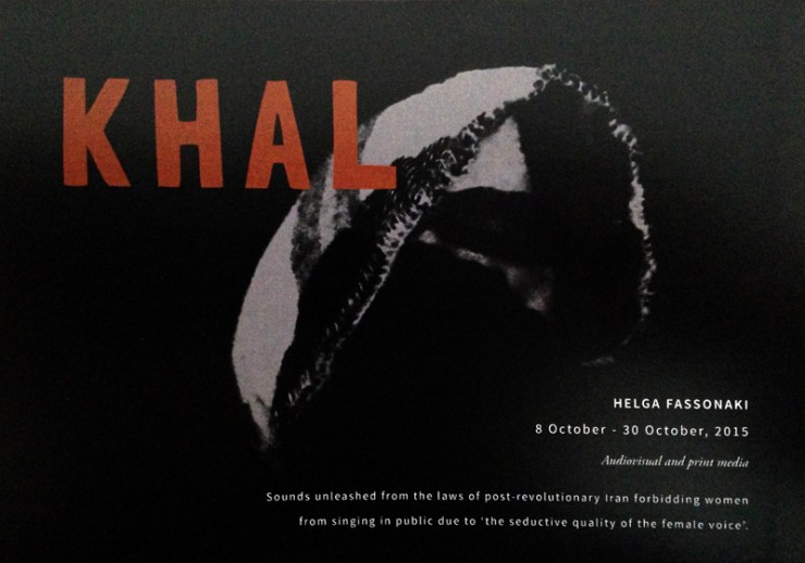 The Auricle Sonic Arts Gallery presented the fourth iteration of Helga Fassonaki’s ongoing project Khal, which she began in Tabriz, Iran in September 2014. Fassonaki had sent sixteen sculptural scores she made in Iran abroad for sixteen female artists to interpret and perform publicly in response to the post-revolution ban on female solo performances. The original scores and recorded interpretations by the participating artists were exhibited at The Auricle gallery, part of a traveling exhibition where each iteration includes recordings and artifacts from the exhibition before as well as live performances of the scores by new artists.