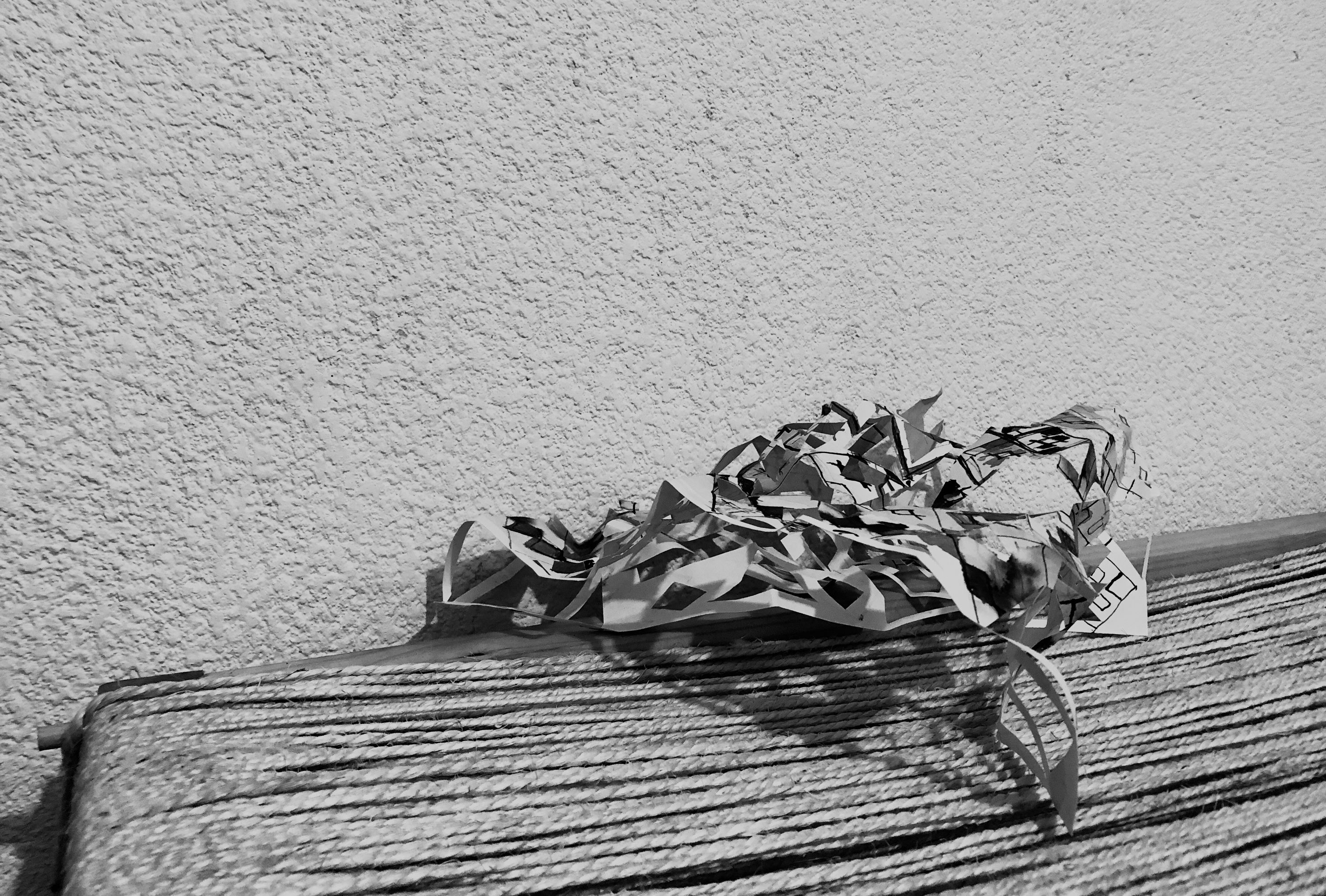 Referencing old Papel Picados I saw throughout the city, Negative was the space around and between, physically close but spiritually distant – the drawings transformed into negatives (cut outs) that move into different architectural poses and are performed as textile, with texture. This is the first stage before the Negatives are made into a paper quilt